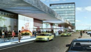 Asimismo, se anexa a este centro comercial una terminal de ómnibus de 5 andenes. Esto mejora la conexión de la ciudad y la organización de los ómnibus interdepartamentales.